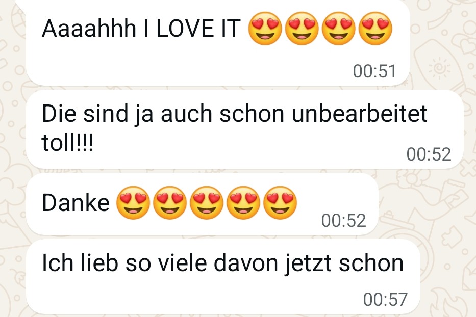 Nach dem Shooting kümmere ich mich darum, die Bilder zu sichern, zu sichten, auszusortieren und zu bearbeiten. Bei den meisten Shootings erhältst du deine fertigen Fotos innerhalb von ein bis zwei Wochen. Bei größeren Shootings oder Reportagen kann es je nach Umfang auch etwas länger dauern. Innerhalb weniger Tage erhältst du aber bereits einen kleinen Sneak Peek mit ein paar ersten Eindrücken – noch unbearbeitet. Sobald ich fertig bin, bekommst du den Link zur Online-Galerie zusammen mit der Rechnung. Nach Zahlungseingang werden die Bilder zum Download freigeschaltet.